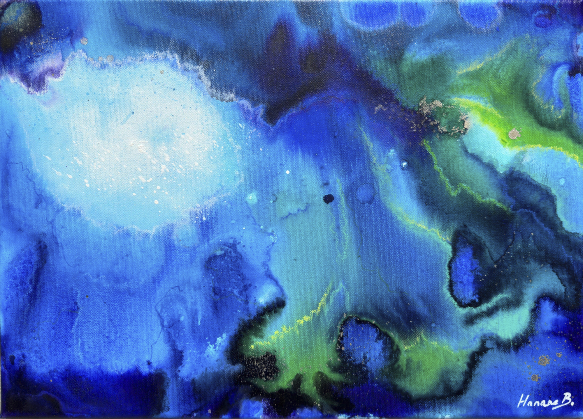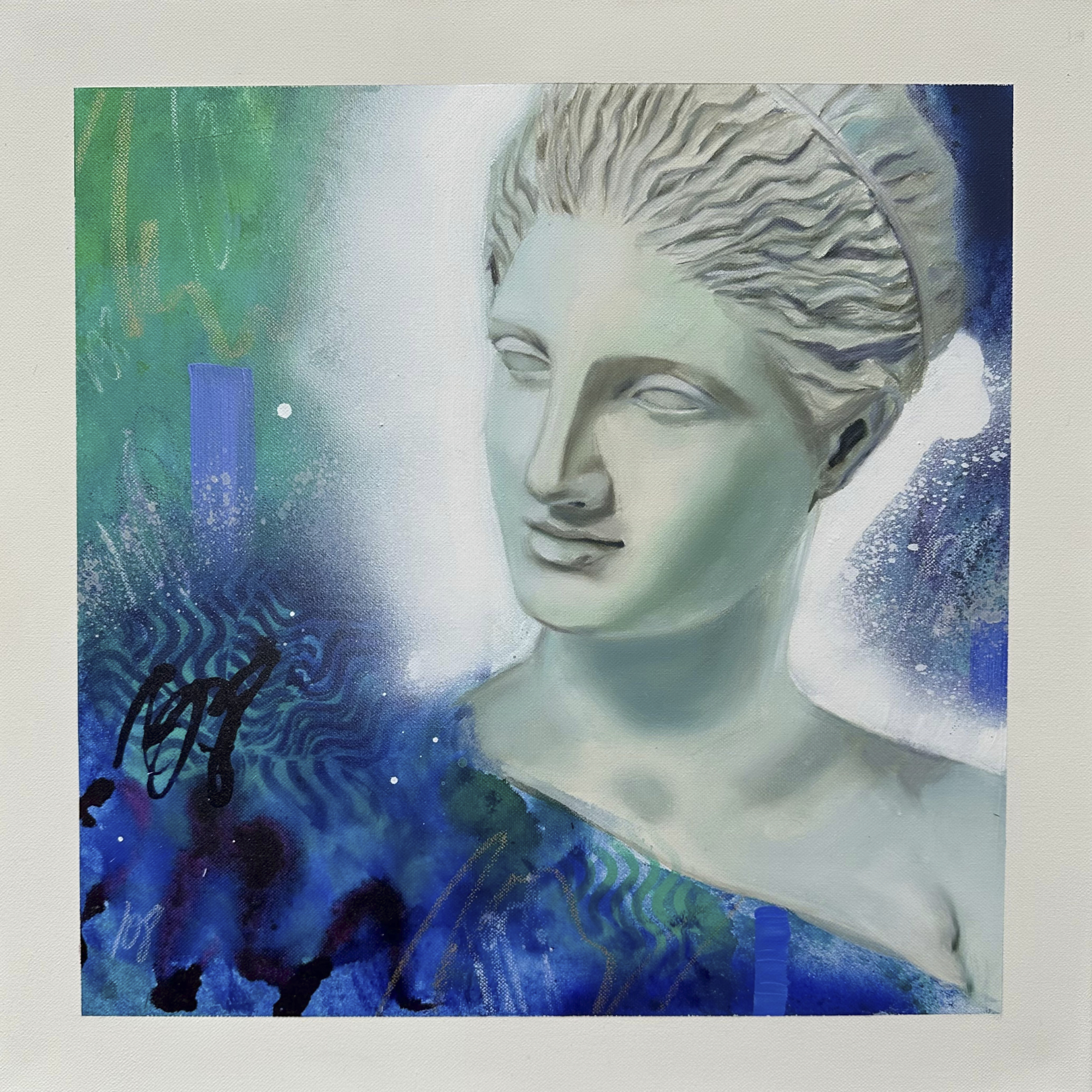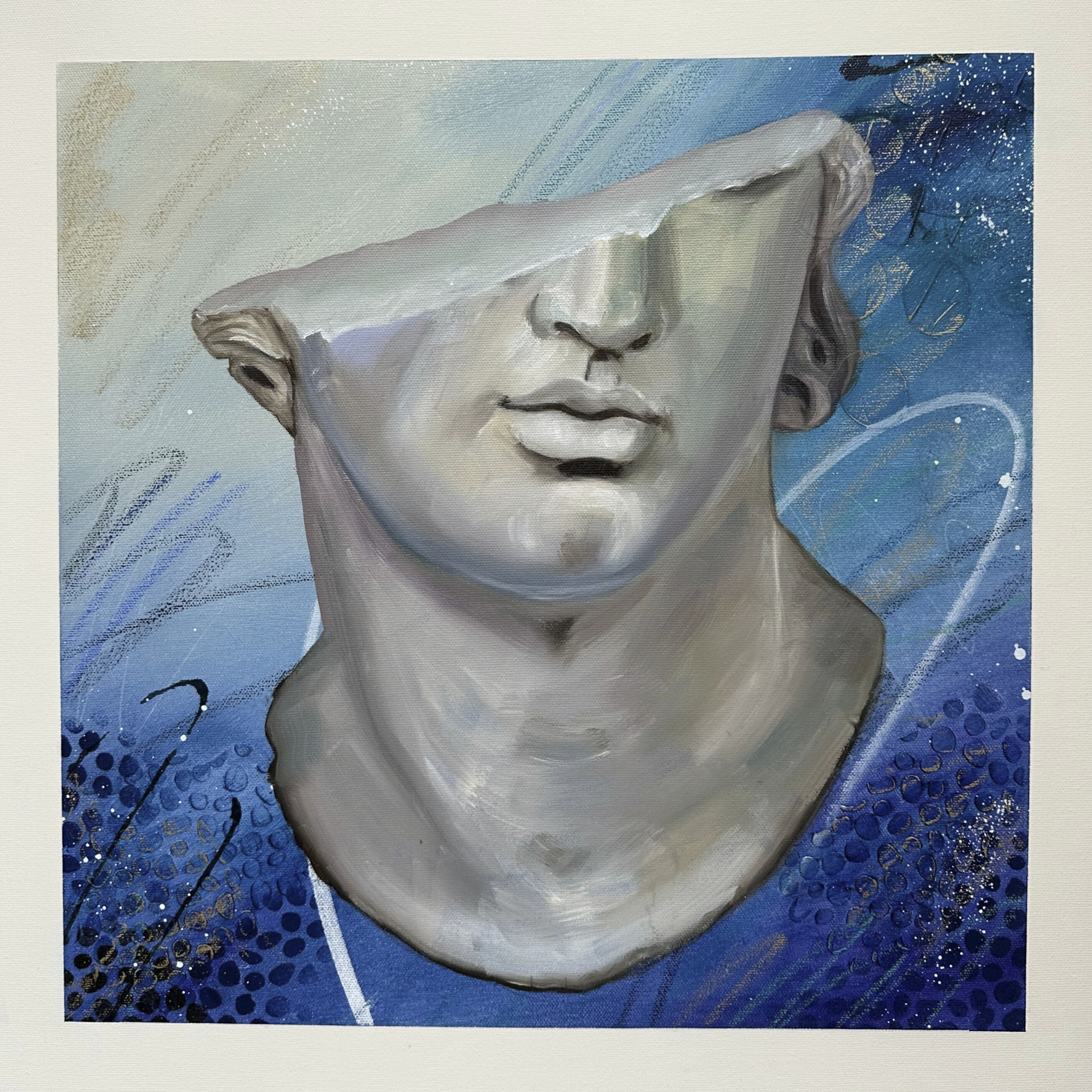 Hanane B. est une artiste peintre qui décline son travail en deux univers : des portraits mythologiques et des œuvres abstraites. Elle stimule nos sens avec des couleurs bleues vibrantes sur des toiles cernées d’une délicate marge écrue. Son portfolio évoque une fusion entre la rigueur de sa formation académique scientifique et une expression artistique en quête de transcendance. L’abstrait lui permet d’exprimer une clé de lecture de l’Univers et de la cosmogonie. Dans ses portraits, elle explore les mythes intemporels qui façonnent la civilisation humaine. Elle y représente des figures inspirées du statuaire greco-romain, qui deviennent modernes, actuelles et parlent aux âmes poétiques comme aux esprits les plus cartésiens. Chez cet artiste, chaque coup de pinceau semble être un acte de célébration à l’héritage civilisationnel et à l’intelligence humaine. Sa démarche vise à explorer la dualité entre l’ancien et le moderne, entre le sacré et le profane, et à utiliser l’art comme un portail dans la quête de soi.