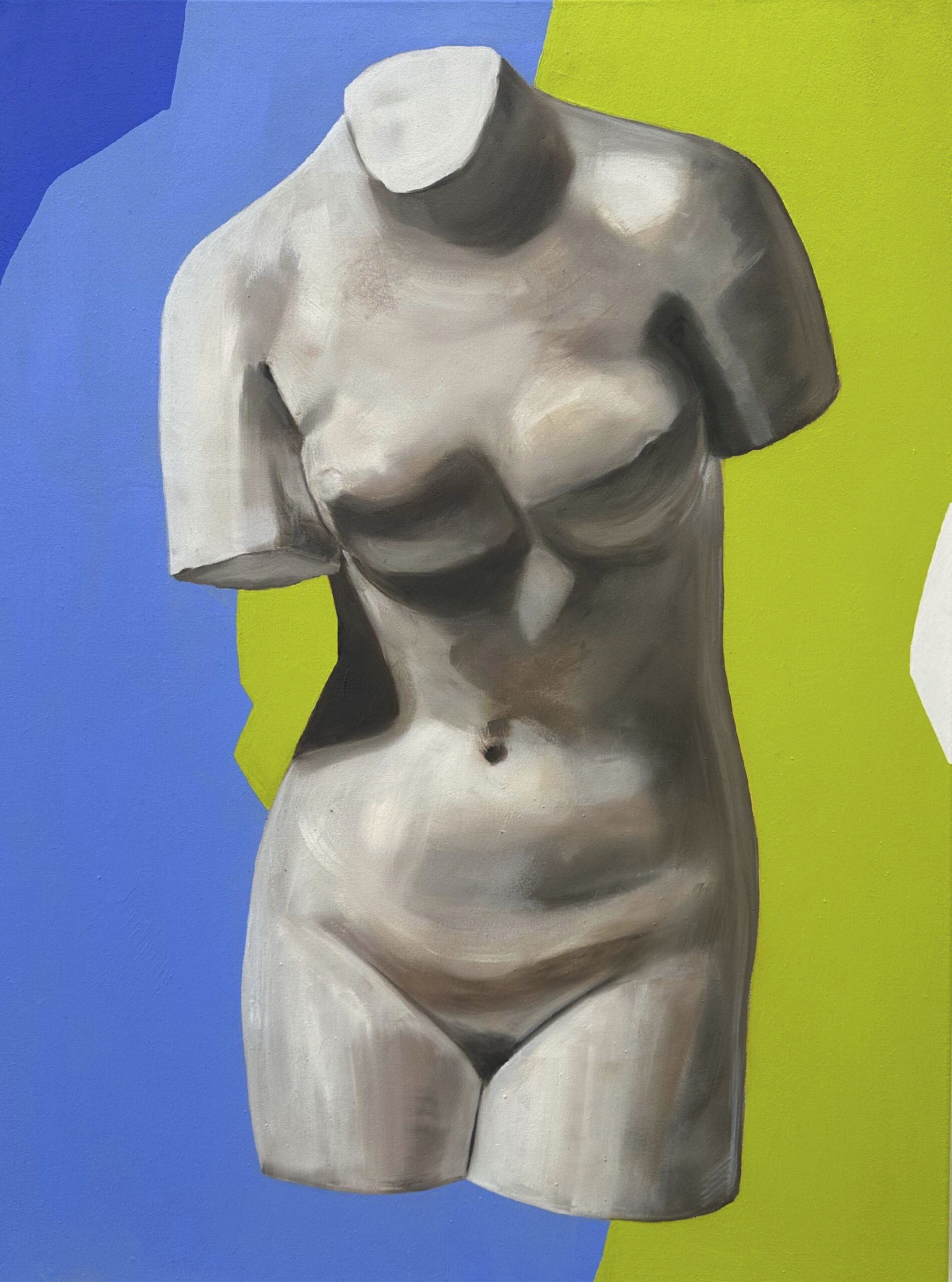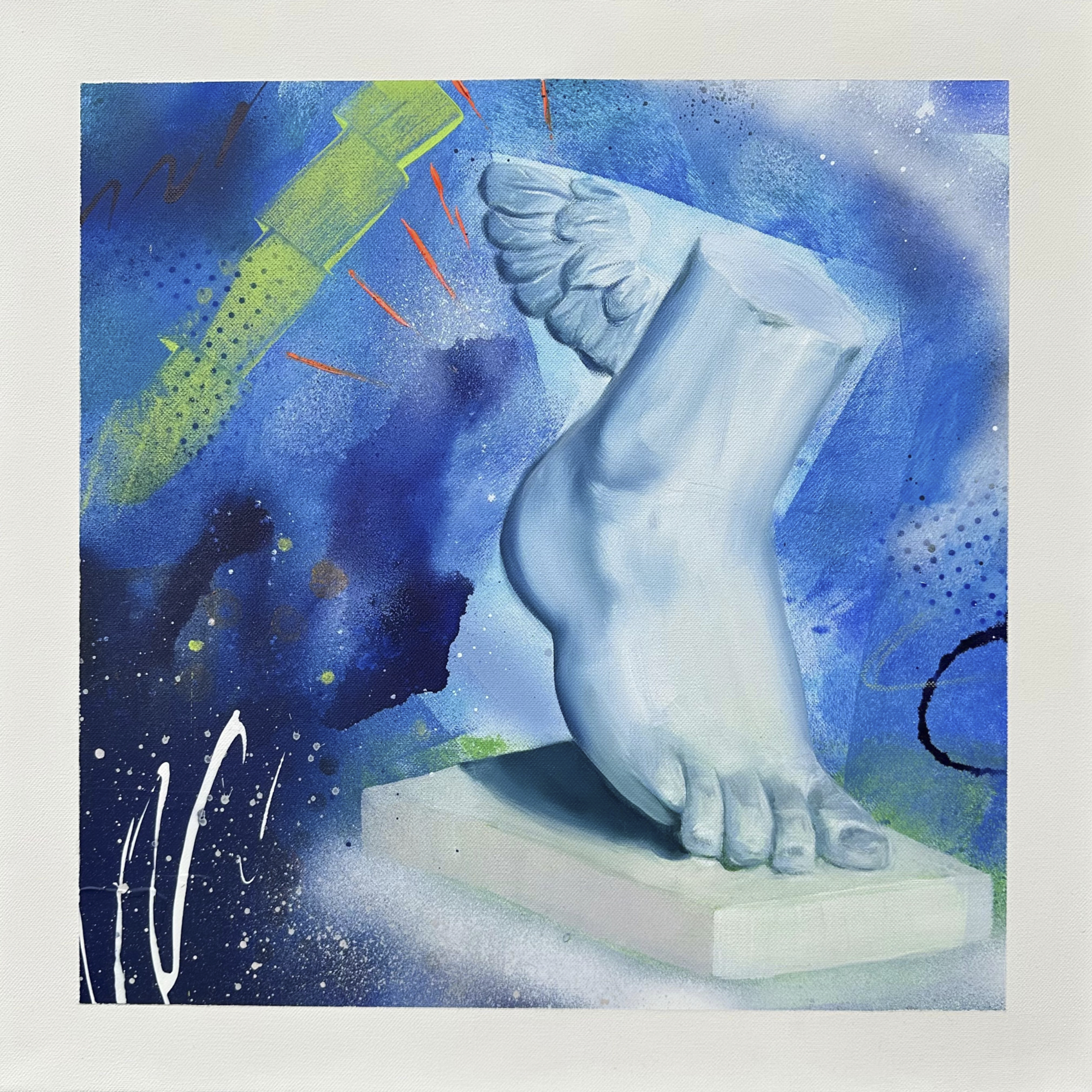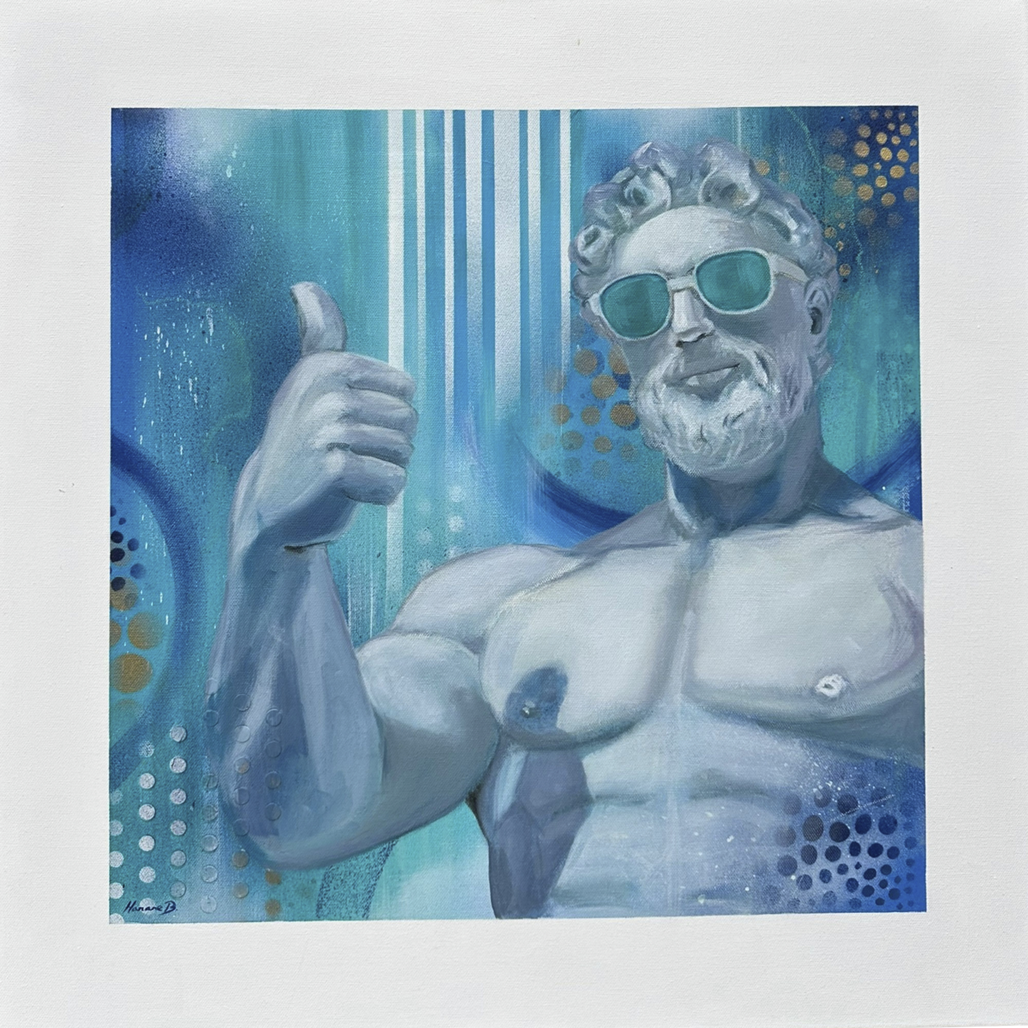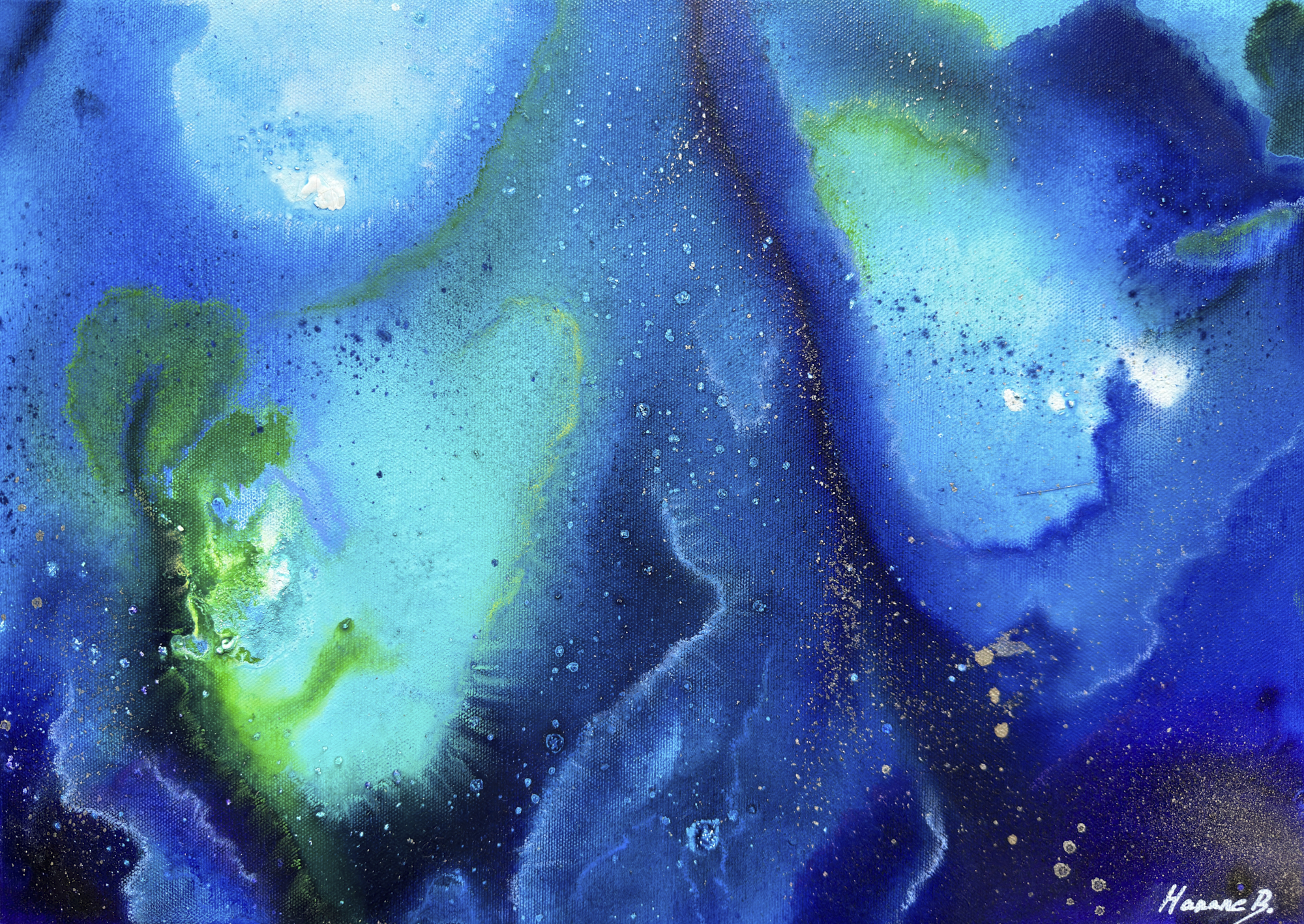 Hanane B. est une artiste peintre qui décline son travail en deux univers : des portraits mythologiques et des œuvres abstraites. Elle stimule nos sens avec des couleurs bleues vibrantes sur des toiles cernées d’une délicate marge écrue. Son portfolio évoque une fusion entre la rigueur de sa formation académique scientifique et une expression artistique en quête de transcendance. L’abstrait lui permet d’exprimer une clé de lecture de l’Univers et de la cosmogonie. Dans ses portraits, elle explore les mythes intemporels qui façonnent la civilisation humaine. Elle y représente des figures inspirées du statuaire greco-romain, qui deviennent modernes, actuelles et parlent aux âmes poétiques comme aux esprits les plus cartésiens. Chez cet artiste, chaque coup de pinceau semble être un acte de célébration à l’héritage civilisationnel et à l’intelligence humaine. Sa démarche vise à explorer la dualité entre l’ancien et le moderne, entre le sacré et le profane, et à utiliser l’art comme un portail dans la quête de soi.