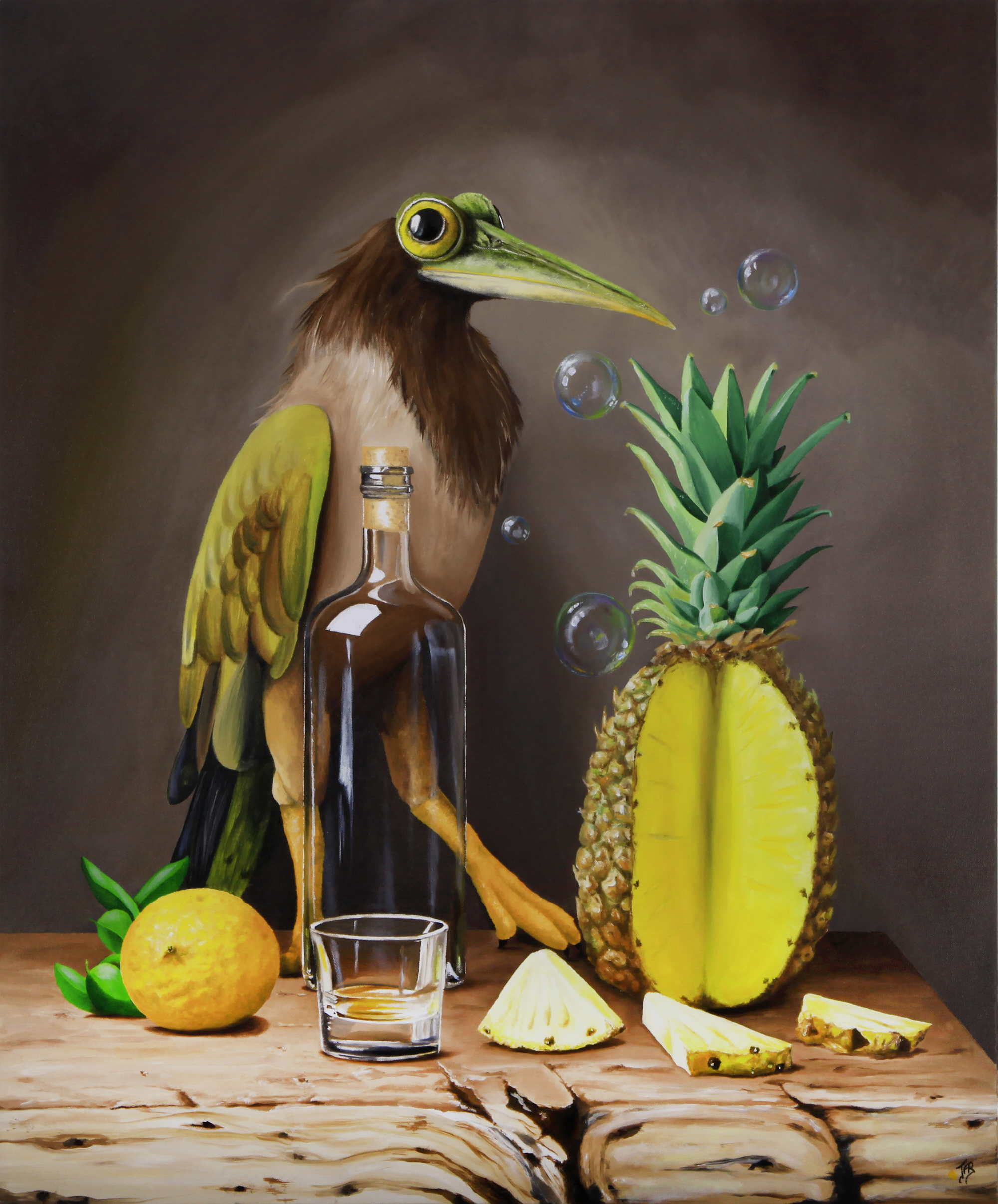 voulant reprendre le cours de ma vie, mes rêves et ce qui me plait. Je suis aujourd’hui artiste peintre et prends plaisir à proposer des œuvres colorées, vivantes et humoristiques dans ce monde (y compris l’art) qui selon moi a besoin de faire s’évader les gens vers un esprit joyeux. Je me lance dans la couleur avec le pastel, l’aquarelle documentaire et l’acrylique. En parallèle, je teste l’huile avec laquelle je retrouve cette pureté.Réalisant des natures mortes, je me rends compte que mon côté humoristique et décalé a besoin de ressurgir dans mes tableaux pour leur apporter de la vie, c’est alors que mes premières bestioles imaginaires et autres animaux font leur apparition. Cotation Drouot, cotation Akoun,
