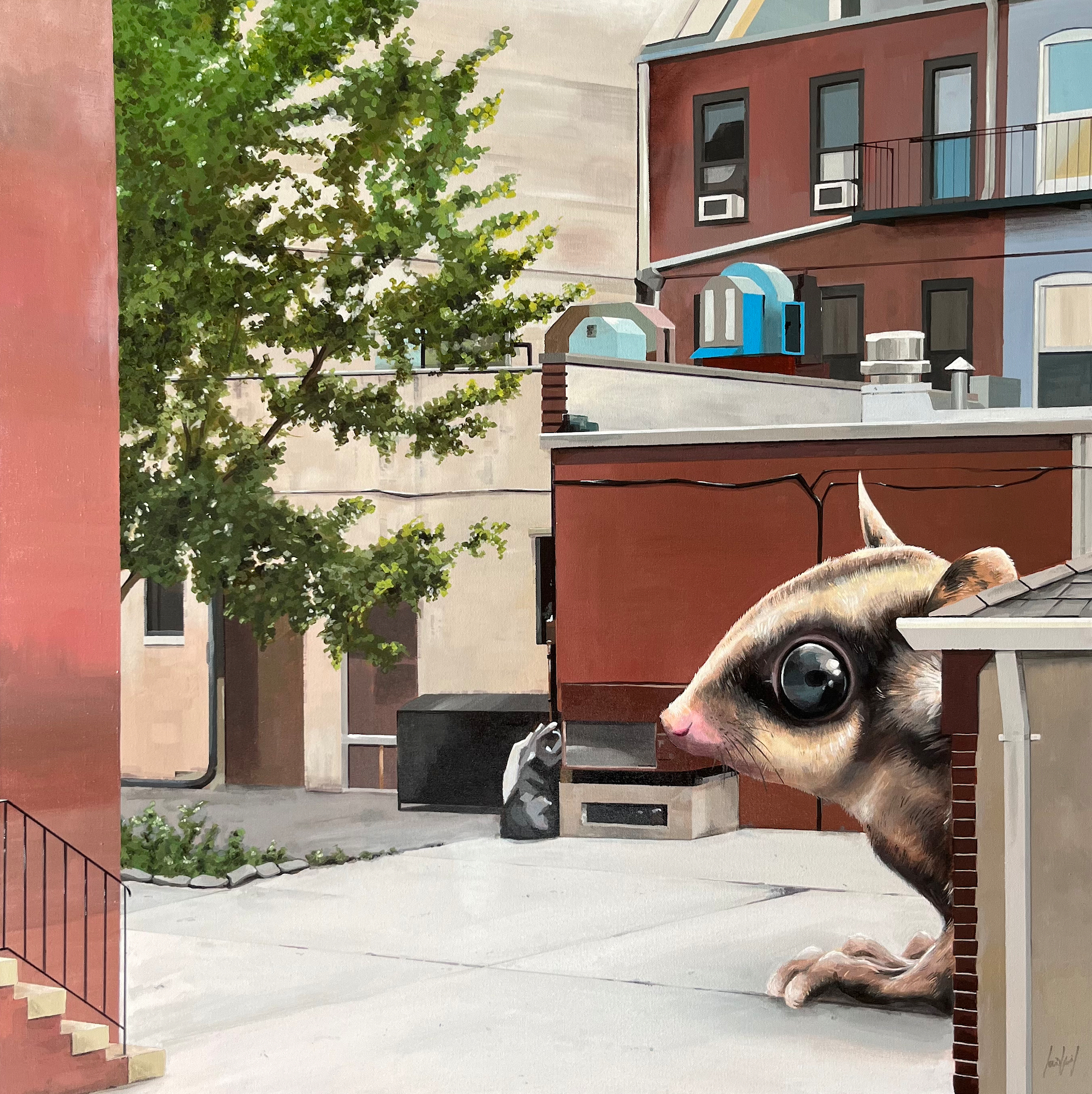 CHIMÈRE N°7 (le Lémurien microcèbe mignon)100×100 cm / 2cm ép – acrylique sur toile vernie – 2021